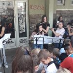 Дана 27. маја 2021. године у дворишту наше школе, ученици Музичке школе “Стеван Мокрањац” одржали су концерт у трајању од петнаест минута. Хор флауте у класи професорке Сање Лазовић извео је следеће композиције: