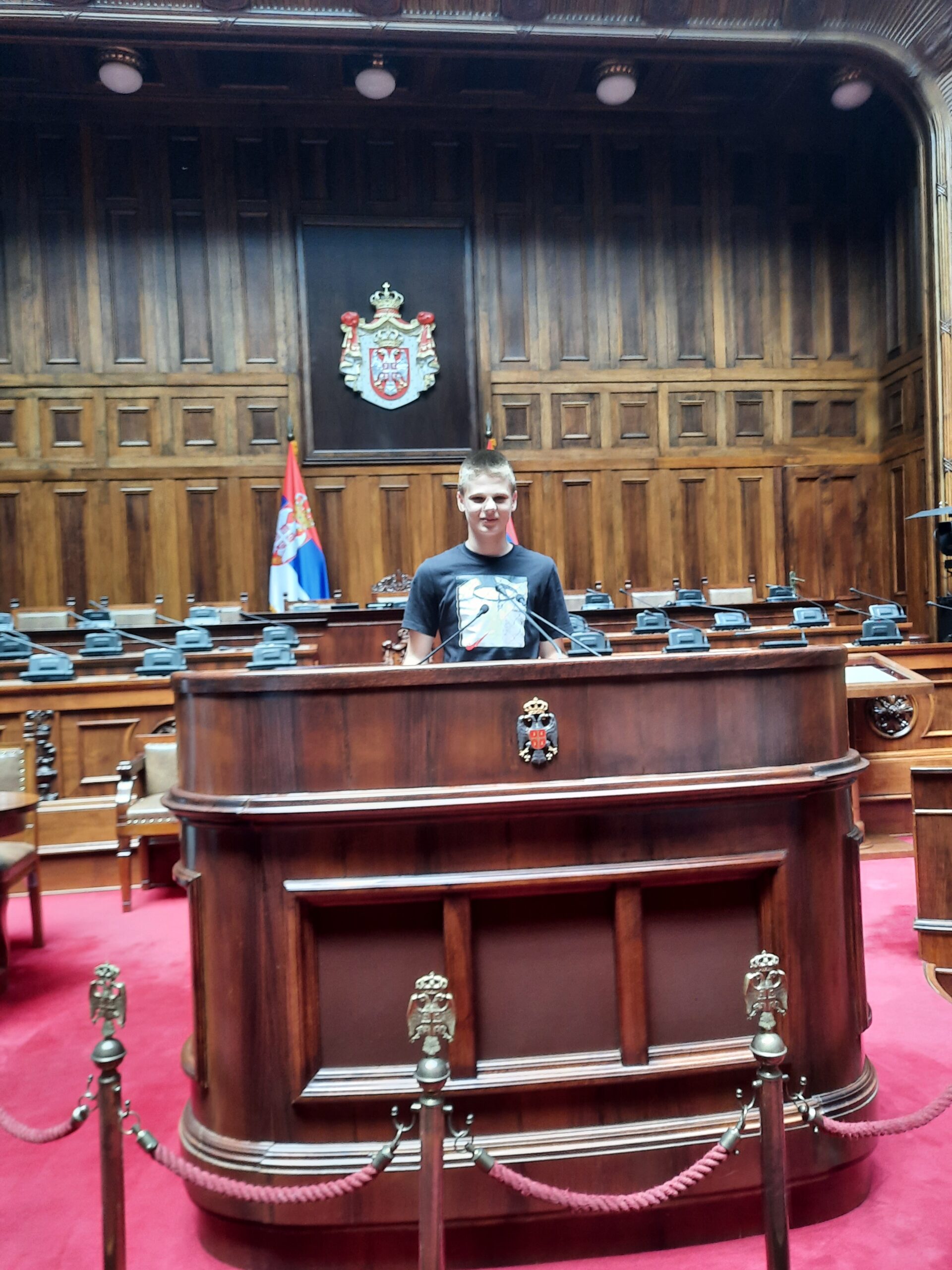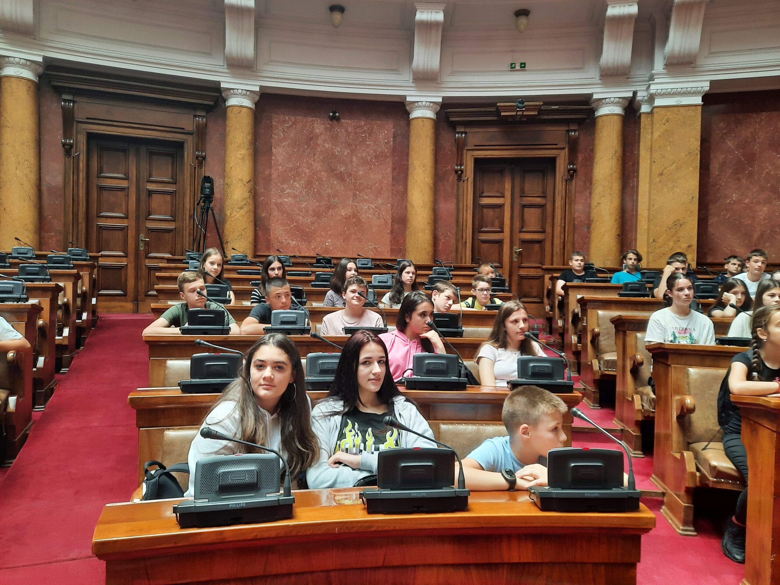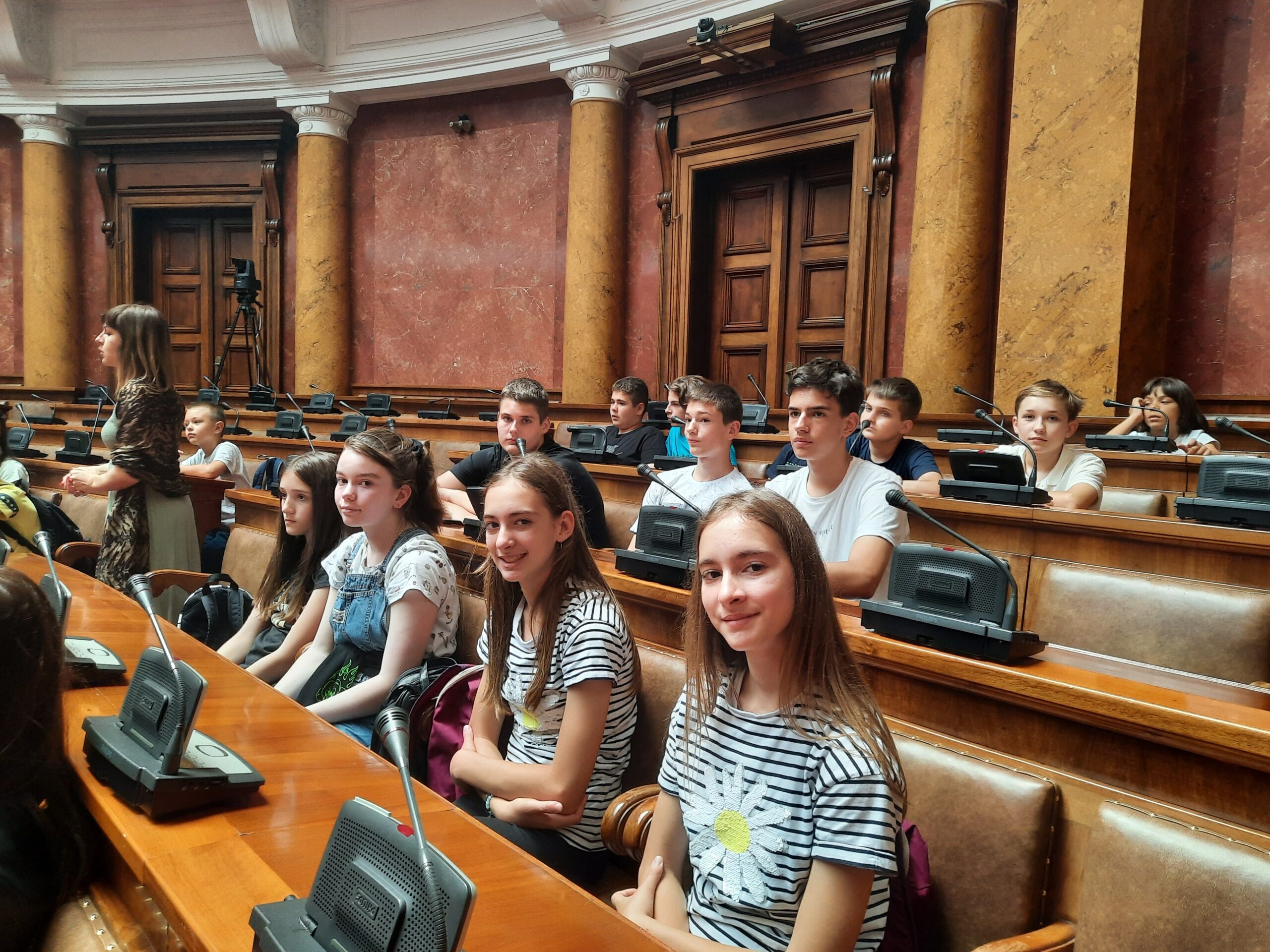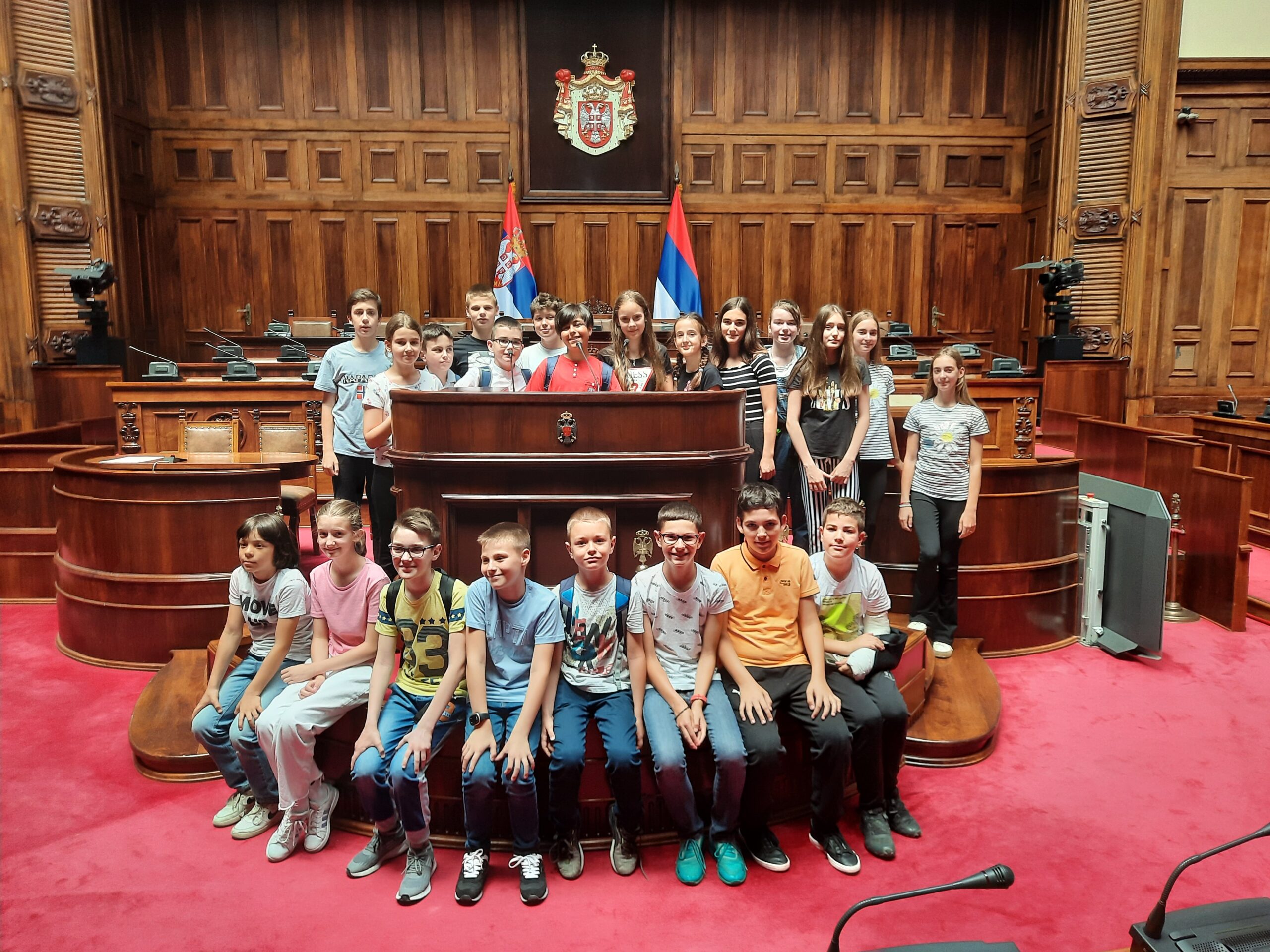 На пут у Београд је кренуло педесет награђених ученика. У Скупштини смо уз пратњу професионалног водича посетили све што је важно за ово здање: конференцијску салу, малу салу, библиотеку, као и архитектонски и декоративно савршено уређене холове. Предочена је важност ове институције за нашу земљу, а очекујемо да ће и неко од учесника наше експедиције за неколико година заузети место у посланичким клупама.