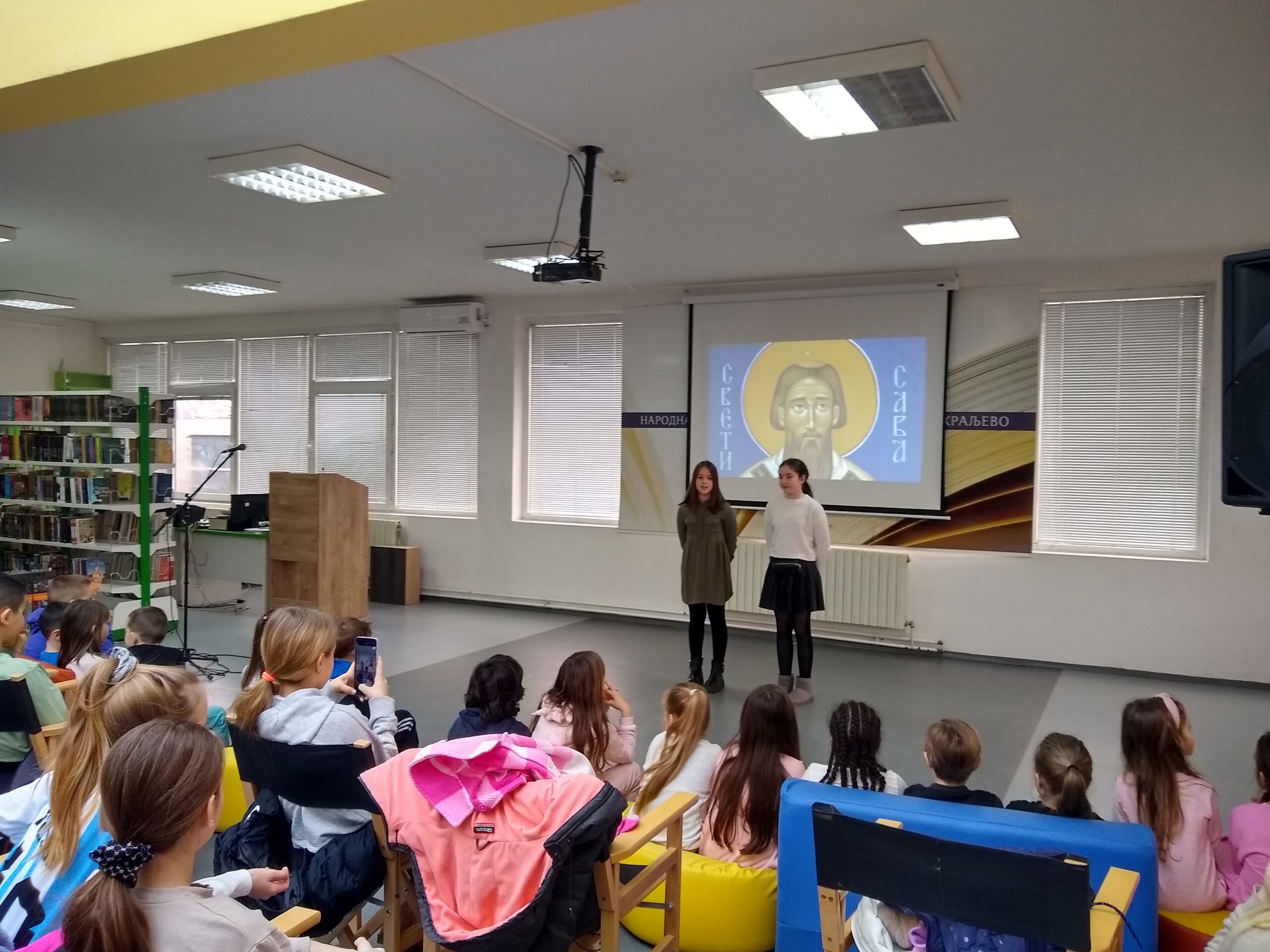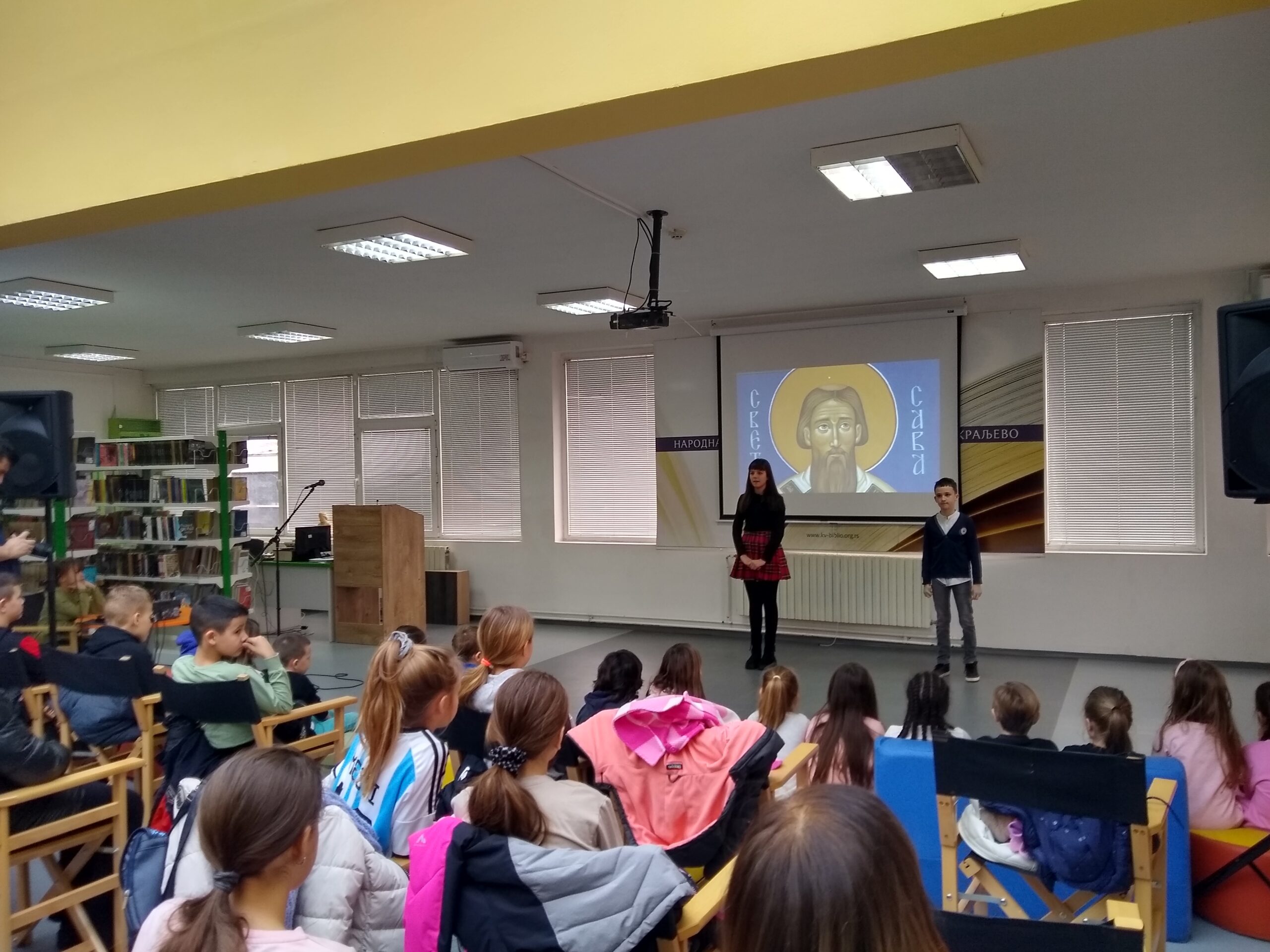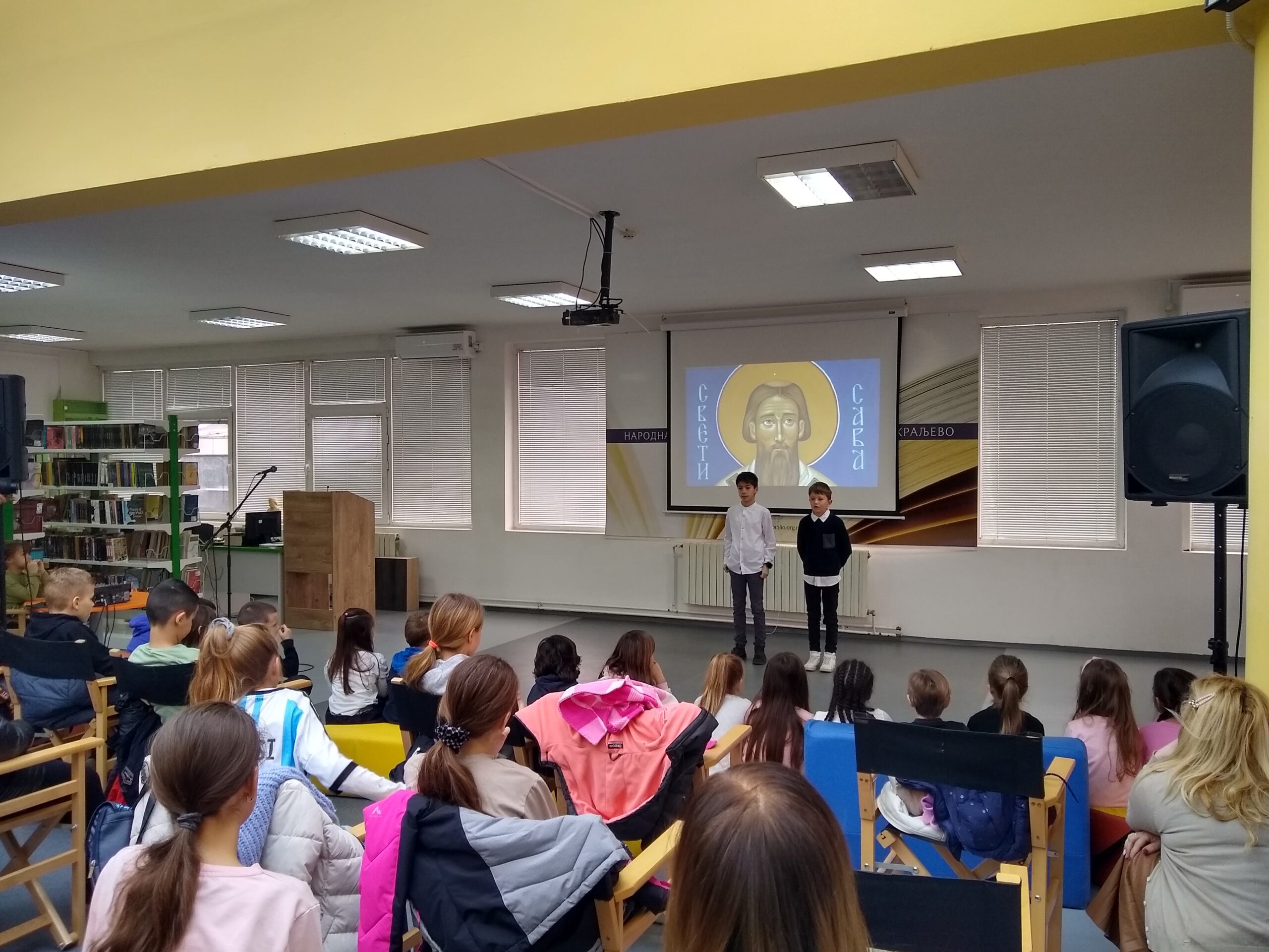 У оквиру обележавања Светосавске недеље, на Дечјем одељењу Библиотеке је приређена приредба о Светом Сави чији је идејни творац и реализатор учитељски тим школе „Димитрије Туцовић“ из Краљева. Учитељице Гордана Љ. Спасојевић, Милица Цвијић, Снежана Трифуновић и Гордана Глишовић, које воде одељења четвртог разреда, су направиле одабир текстова о Сави Немањићу, драматизовале их и прилагодиле деци нижег основношколског узраста. Текстови говоре о важним сегментима Савиног живота и рада који су пресудно утицали на стварање српског националног идентитета. Током получасовне представе основци су извели више скечева и веома успешно казивали стихове о овој најзначајнијој личности српске историје.