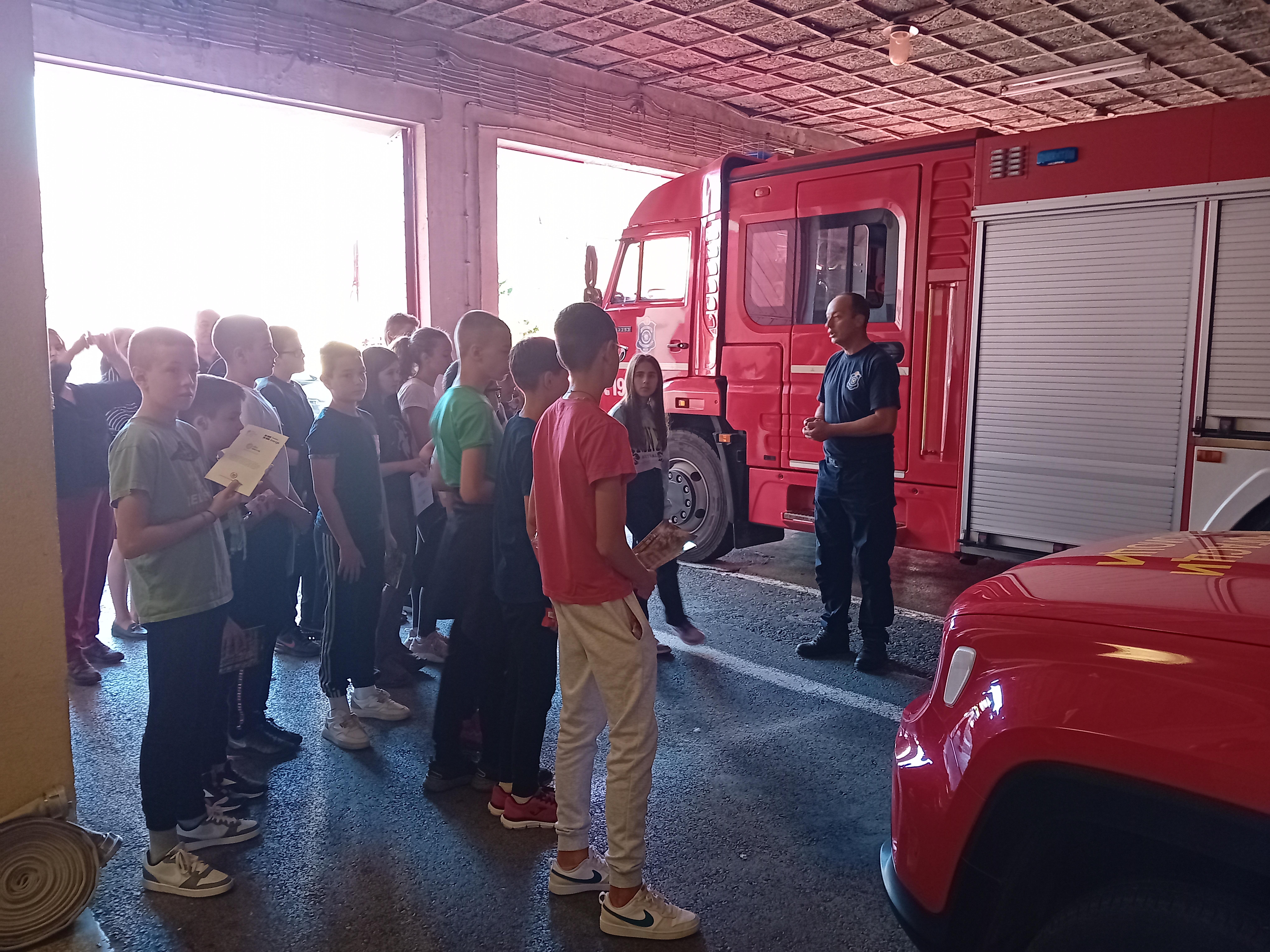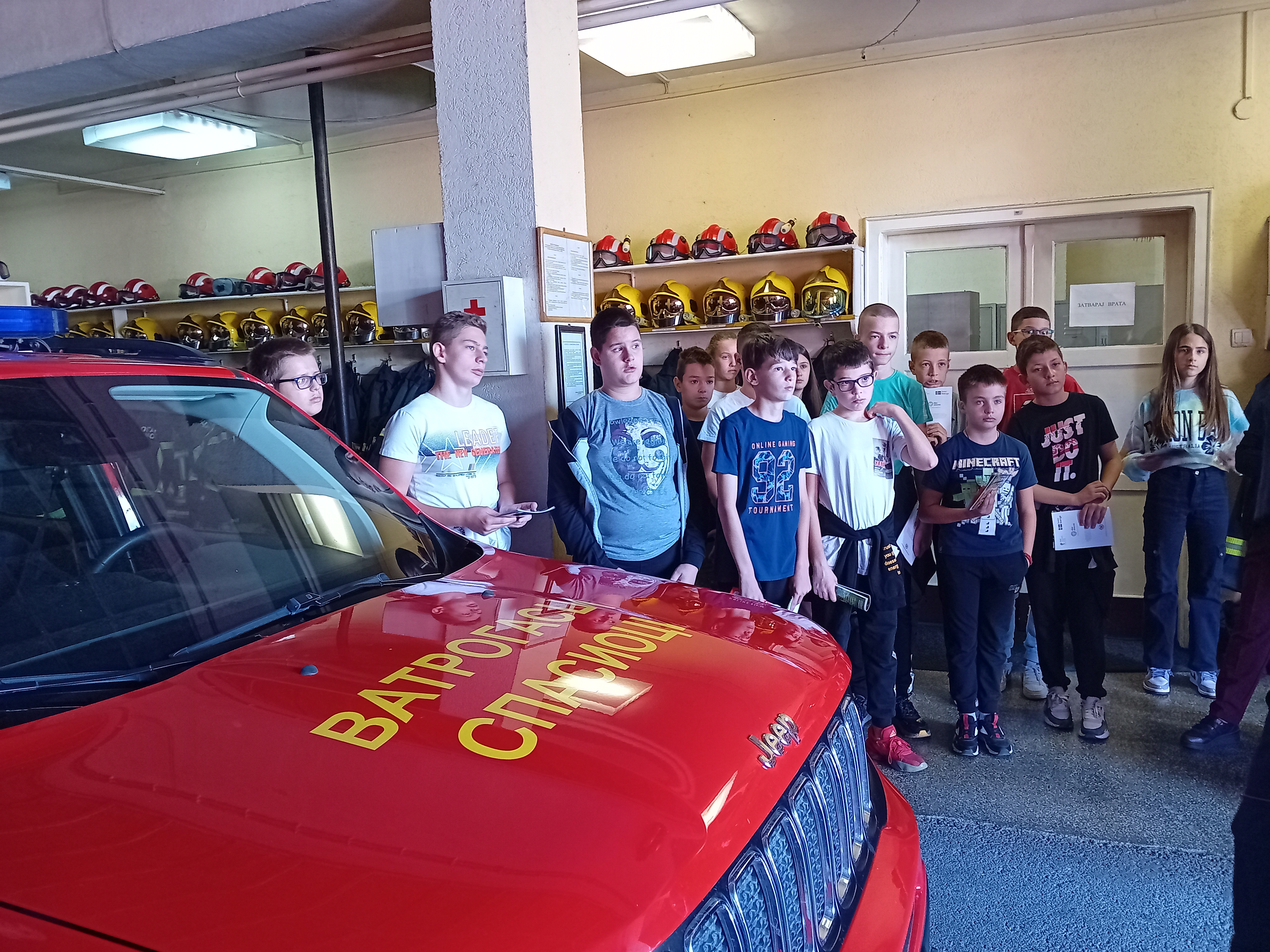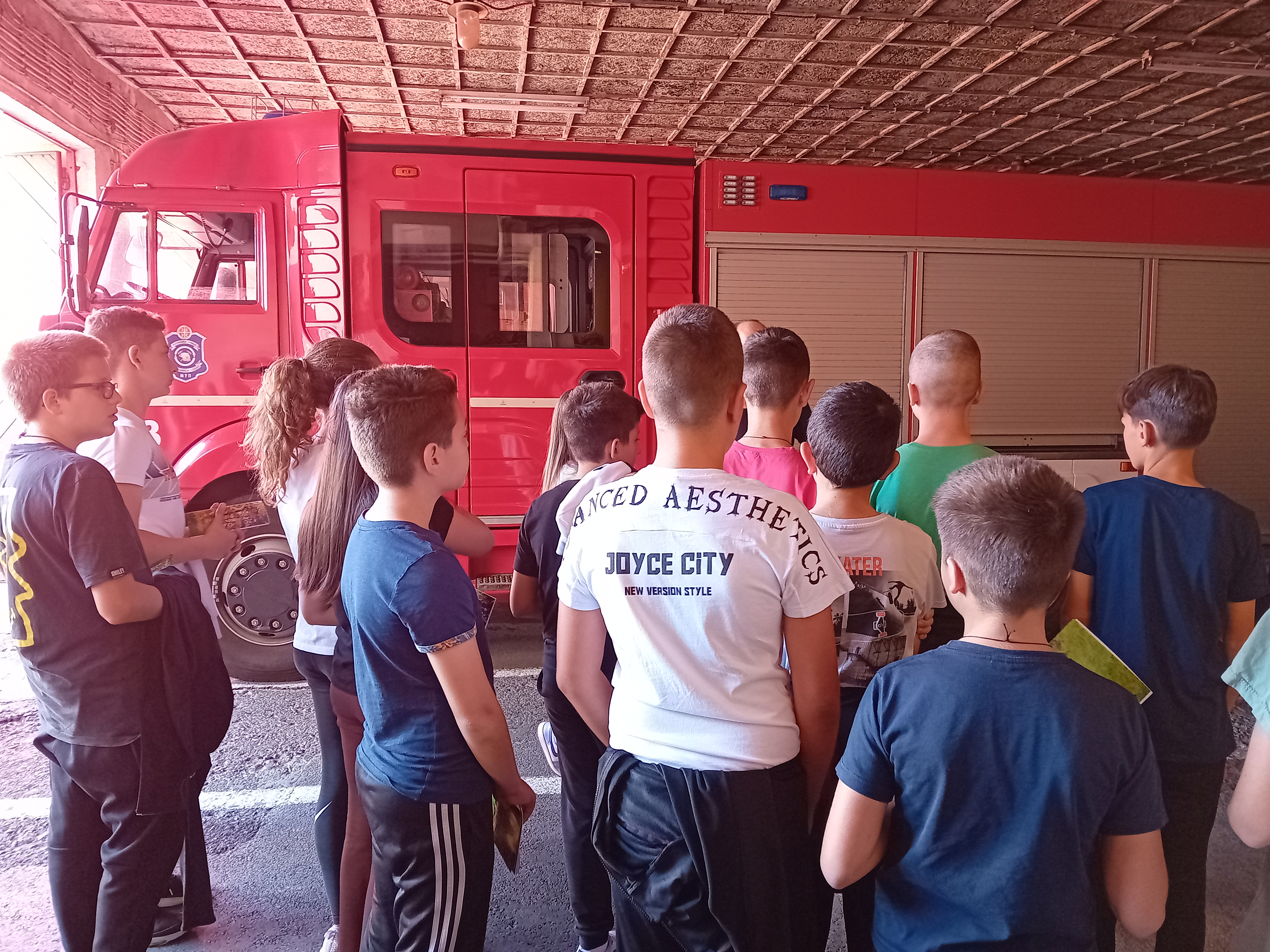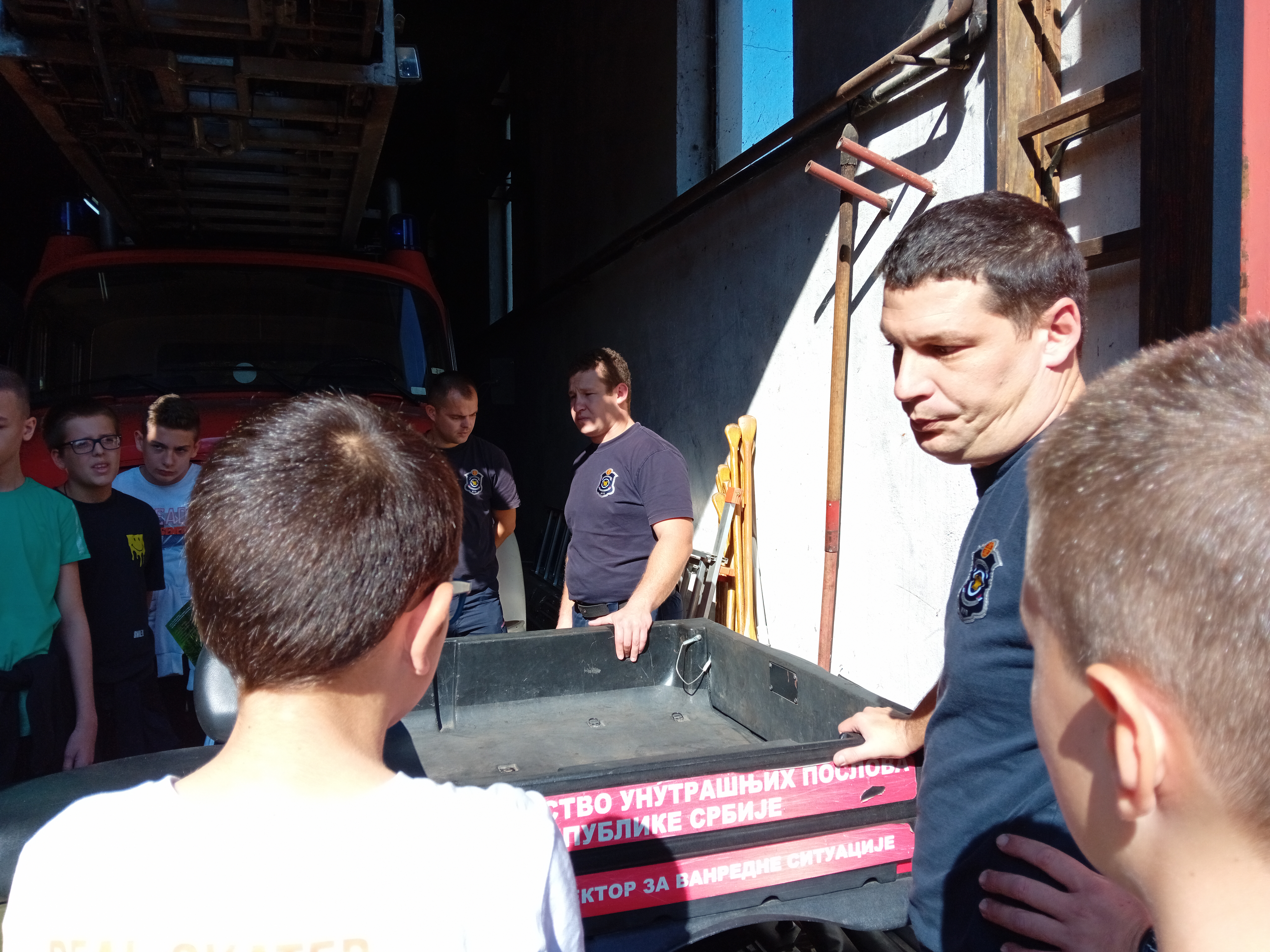 Након предавања ученици с у отишли у просторије ватрогасног дома где су их дочекали професионални ватрогасци Трошић Ненад, Милинко Јаковљевић, Владимир Милићевић, и Александар Ромчевић који су им показали ватрогасна кола, и опрему коју користе у ситуацијама пожара, поплава, земљотреса…Било је ту навално возило, возило са цистерном за воду, возило са мердевинама, чамци, специјална одела….Објаснили су им на који начин се поступа у случају пожара, а такође су ими скренули пажњу на лажне дојаве пожара.