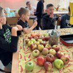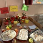 Октобар је месец здраве хране, а 20. октобар се обележава као Светски дан јабука. У нашој школи овај дан смо обележили на занимљив и креативан начин уз помоћ ученика одељења IV/1 и учитељице Тијане Ђорђевић. На почетку часа разговарали смо о значају јабуке по човеково здравље, читали занимљиве текстове о краљици воћа а онда је уследио плес у пару са јабуком између чела. Раздрагани и весели, ученици су плесали уз песму Нових фoсила „Ја сам за плес“. Након тога, подељени у групе ученици су уз помоћ учитељице и директорке школе Драгане Ђуривић која је била у посети часу, правили питу од јабука. Вредне руке су створиле најукусније пите које смо испекли и послужили запослене у школи. Деца су уживала што се може видети по фотографијама, а сигурни смо да се овакви часови не заборављају.